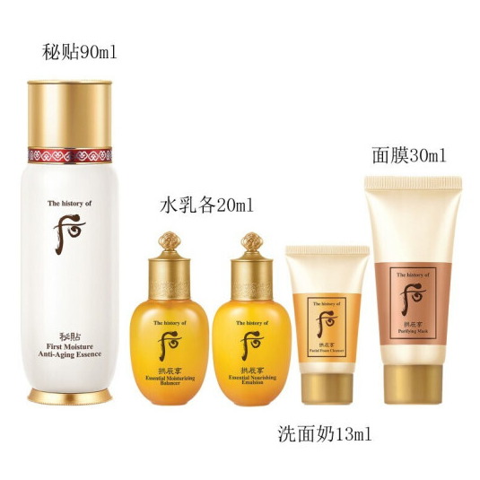 品牌: 后(The History of Whoo) 商品名称:韩国进口whoo后套装 后循环秘贴精华 商品毛重:1.8kg 功效:补水,保湿 适用人群:成人 类别:礼盒装 适合肤质:任何肤质 国产/进口:进口